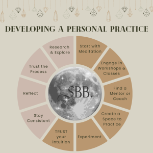 The beauty of a spiritual or personal practice lies in its potential to nurture and guide us on the journey of self-discovery. By practicing mindfulness, sticking to a routine, meditation, or other faith-based rituals, we can develop a heightened sense of self-awareness, gaining insight into our purpose, and exploring the relationship between mind, body, and soul. And these practices can be totally our own. People are finding success with getting back to the roots by dropping any preconceived notions, dropping any “rules” and creating their own personal practice. This means incorporating whatever modalities speak to us, and making it work for ourselves. Gone are the rigid expectations surrounding what a spiritual or personal practice should look like.